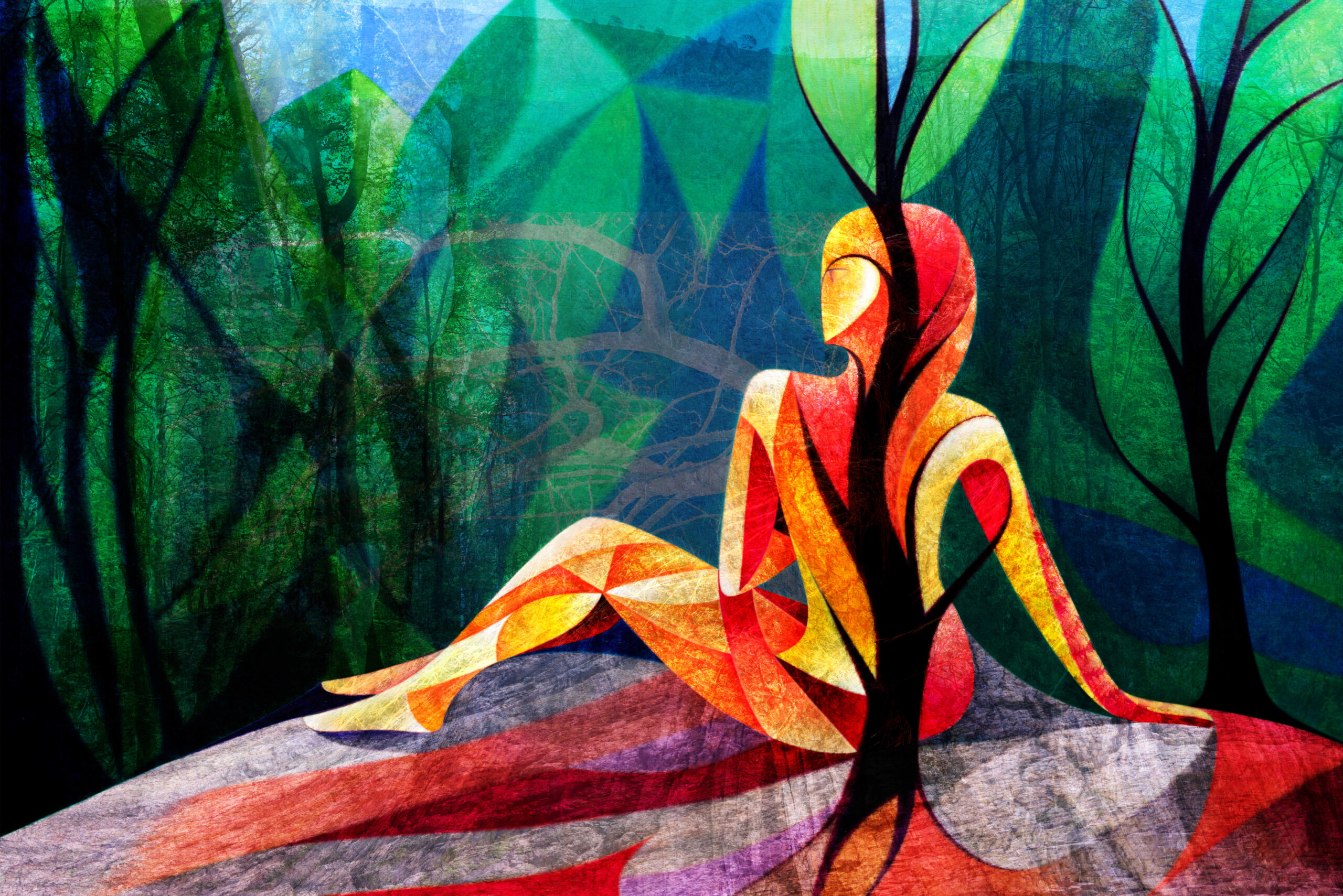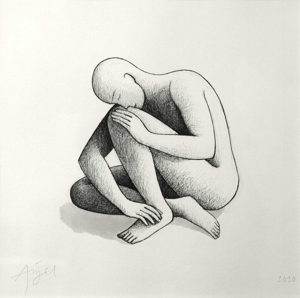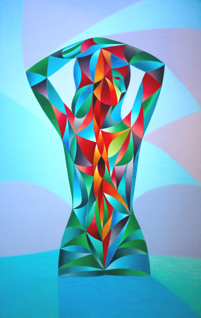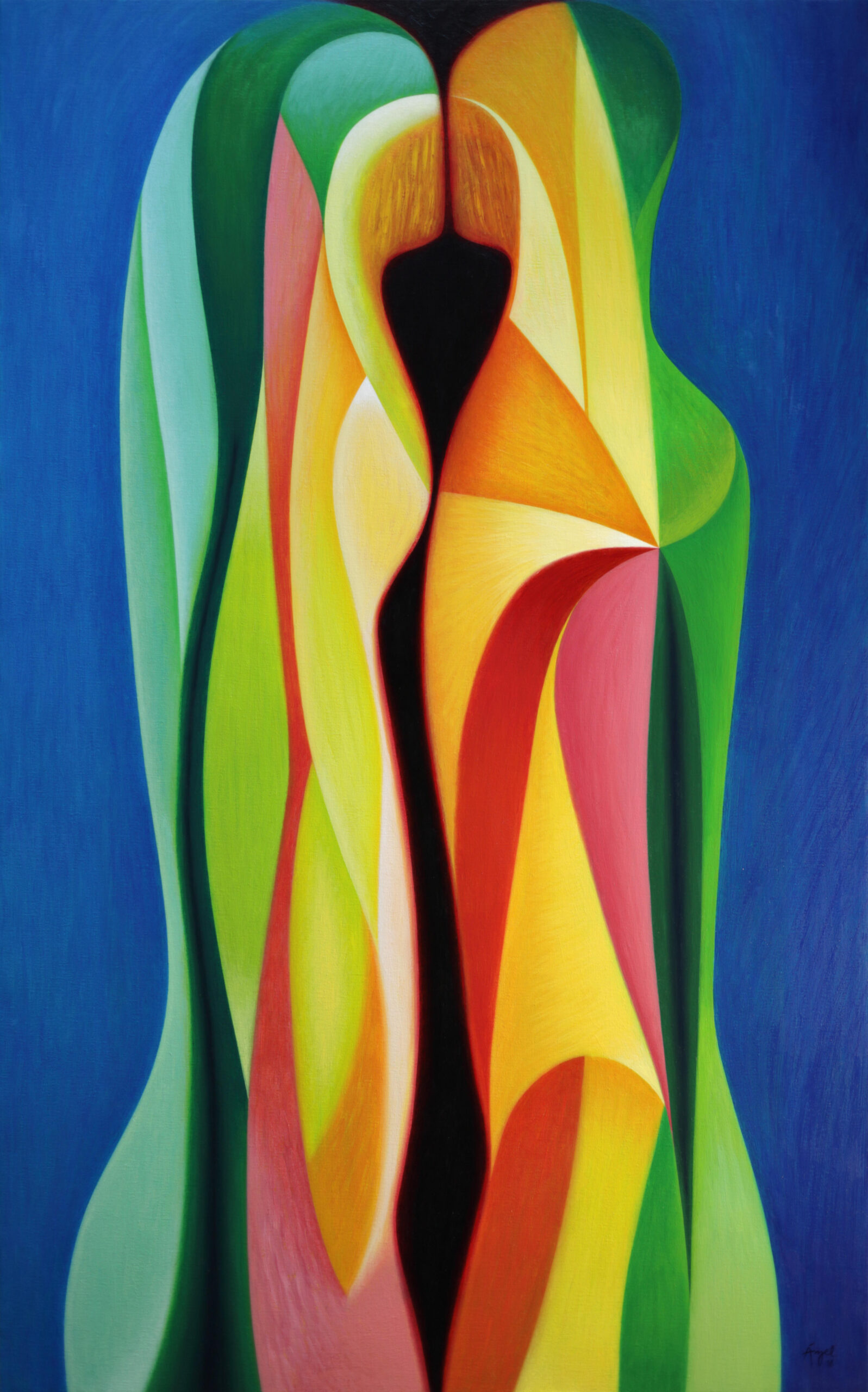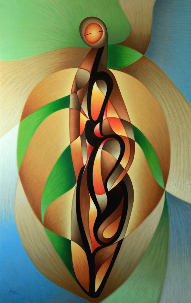 Ángel Estévez en esta muestra nos propone reflexionar acerca de las relaciones entre naturaleza y ser humano. Los títulos de sus obras son evocadores de un remanso al que podemos llegar a través de la simbiosis con el mundo natural: Manantial, Reposo, Sueño, Mujer hoja…poesías dibujadas, estados de ánimo equilibrados, colores hermanados en forma y semántica. Emociones desplegadas, pero también contenidas, todo ello en un corpus jugoso, prolífico y certero.