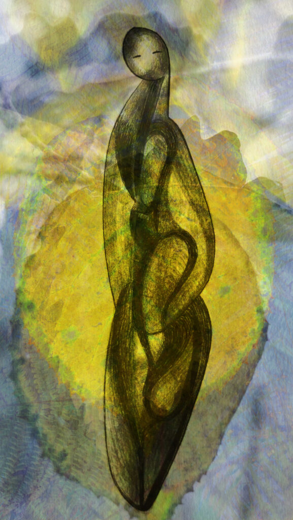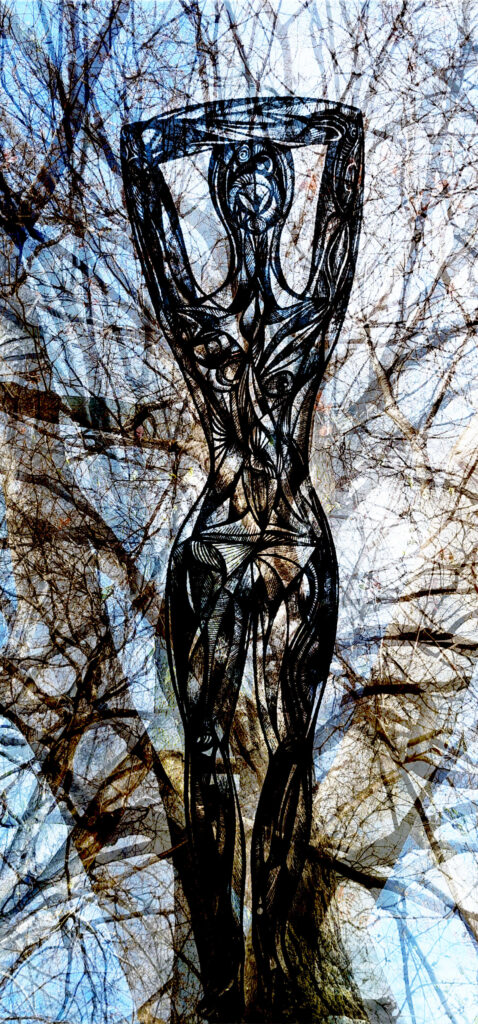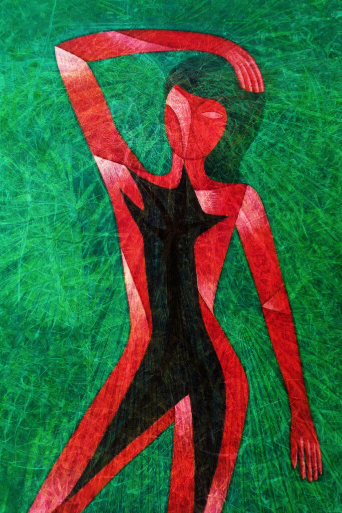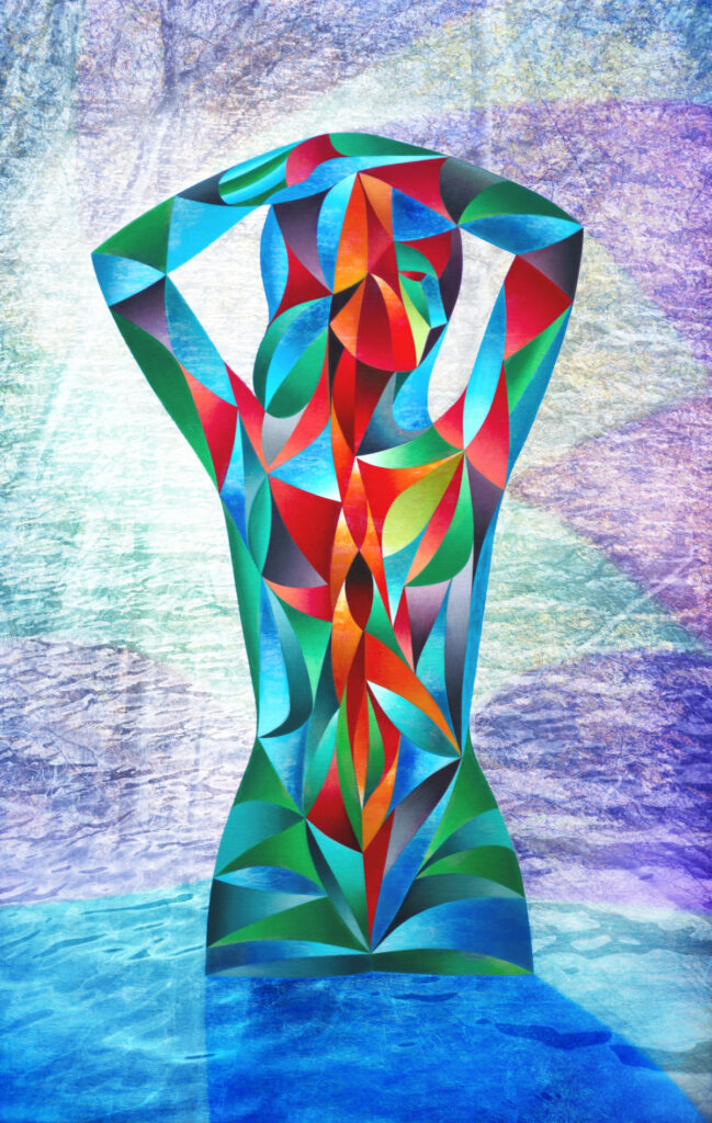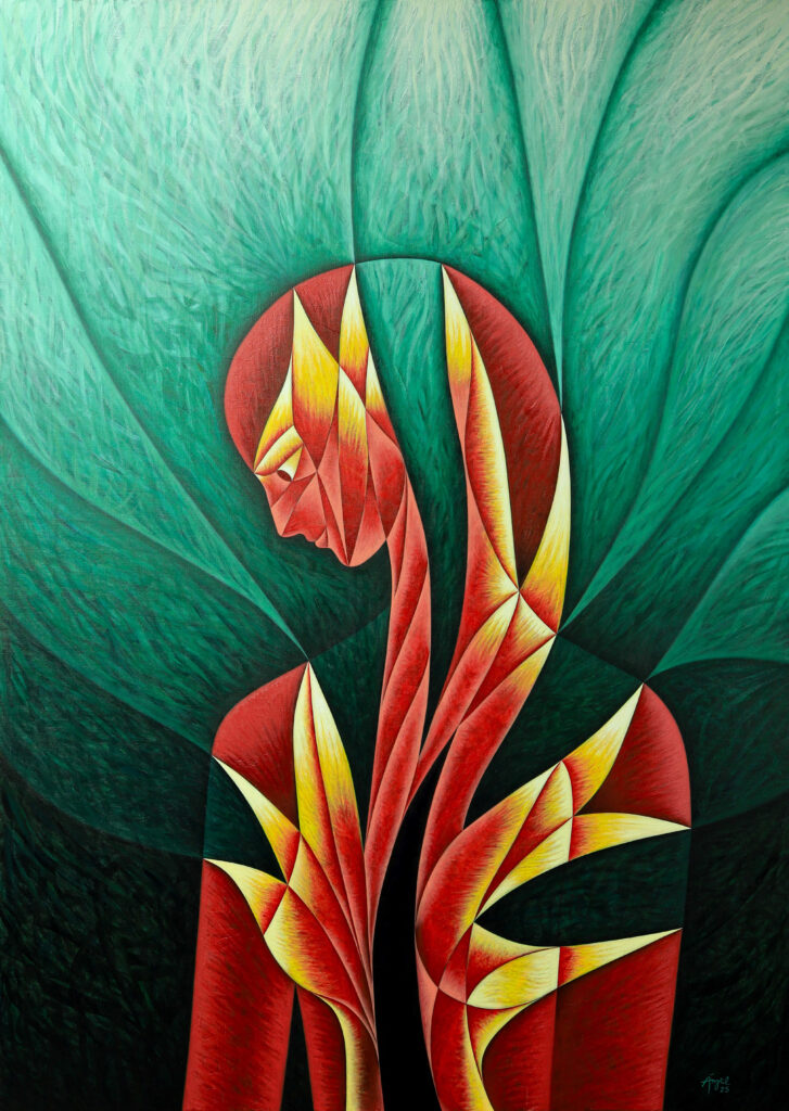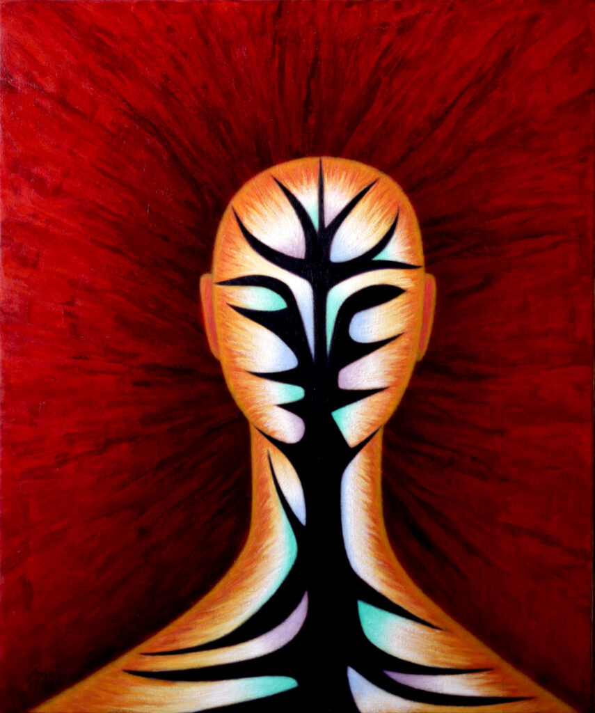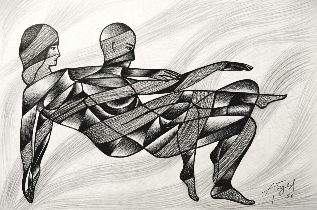 Ángel Estévez en esta muestra nos propone reflexionar acerca de las relaciones entre naturaleza y ser humano. Los títulos de sus obras son evocadores de un remanso al que podemos llegar a través de la simbiosis con el mundo natural: Manantial, Reposo, Sueño, Mujer hoja…poesías dibujadas, estados de ánimo equilibrados, colores hermanados en forma y semántica. Emociones desplegadas, pero también contenidas, todo ello en un corpus jugoso, prolífico y certero.