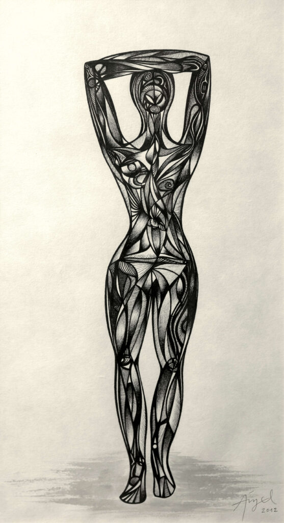Sus dibujos son el arranque de su producción, cuan savia que nutre si creatividad y mensaje.