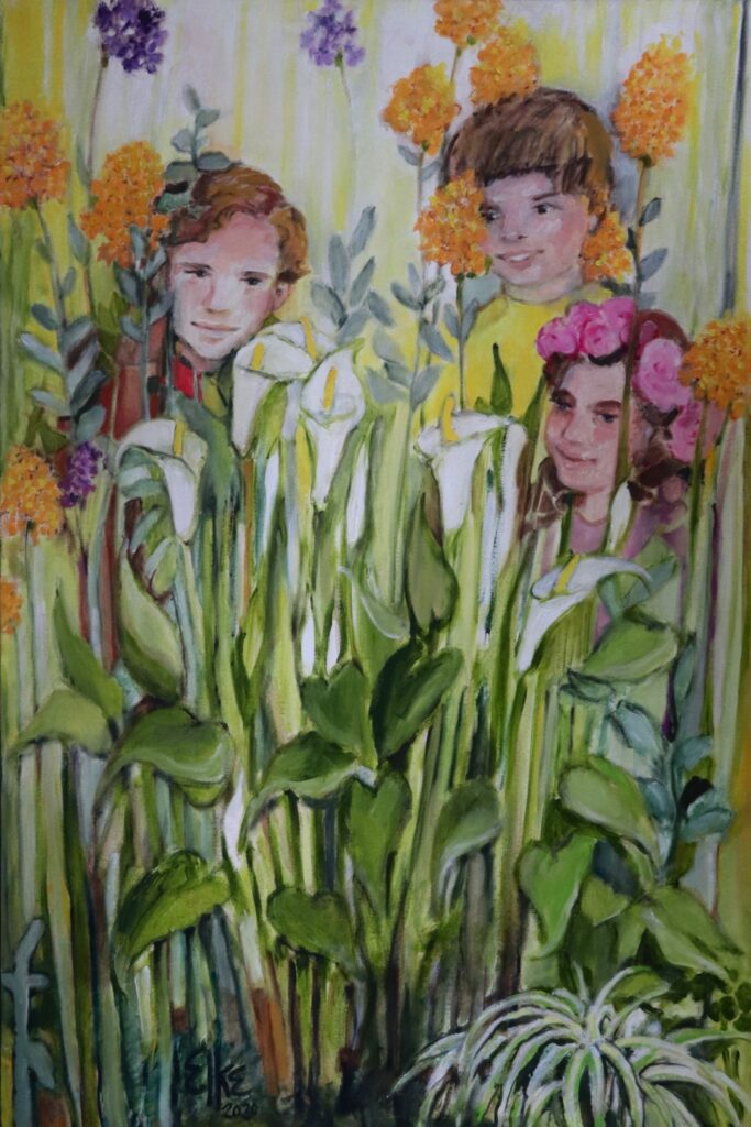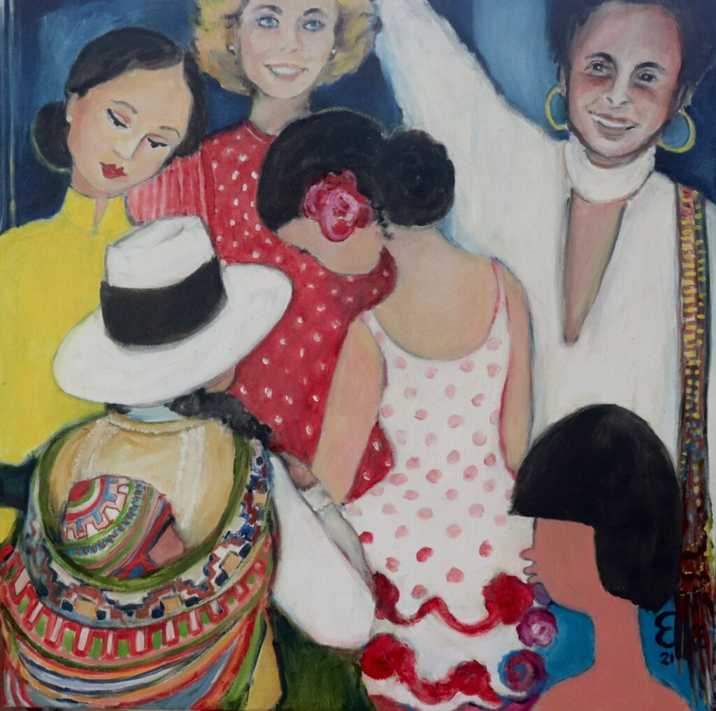 En esta colectiva, la artista nos presenta mujeres de miradas contemplativas, arropadas con la fuerza del color e iluminadas con el sello de la luz que plasma en sus obras. Elke se sirve de la figura y el color para establecer una conexión con el lado femenino que habita en cada uno y la obra que estamos contemplando. La madre, la artista y la mujer que en ella confluyen son plasmadas en lienzos vivos, repletos de color y ejecutados con la vírgula tan propia en ella cargada con óleo que aplica directamente del tubo a través del pincel sobre el lienzo para dar vida a estas maravillosas mujeres.