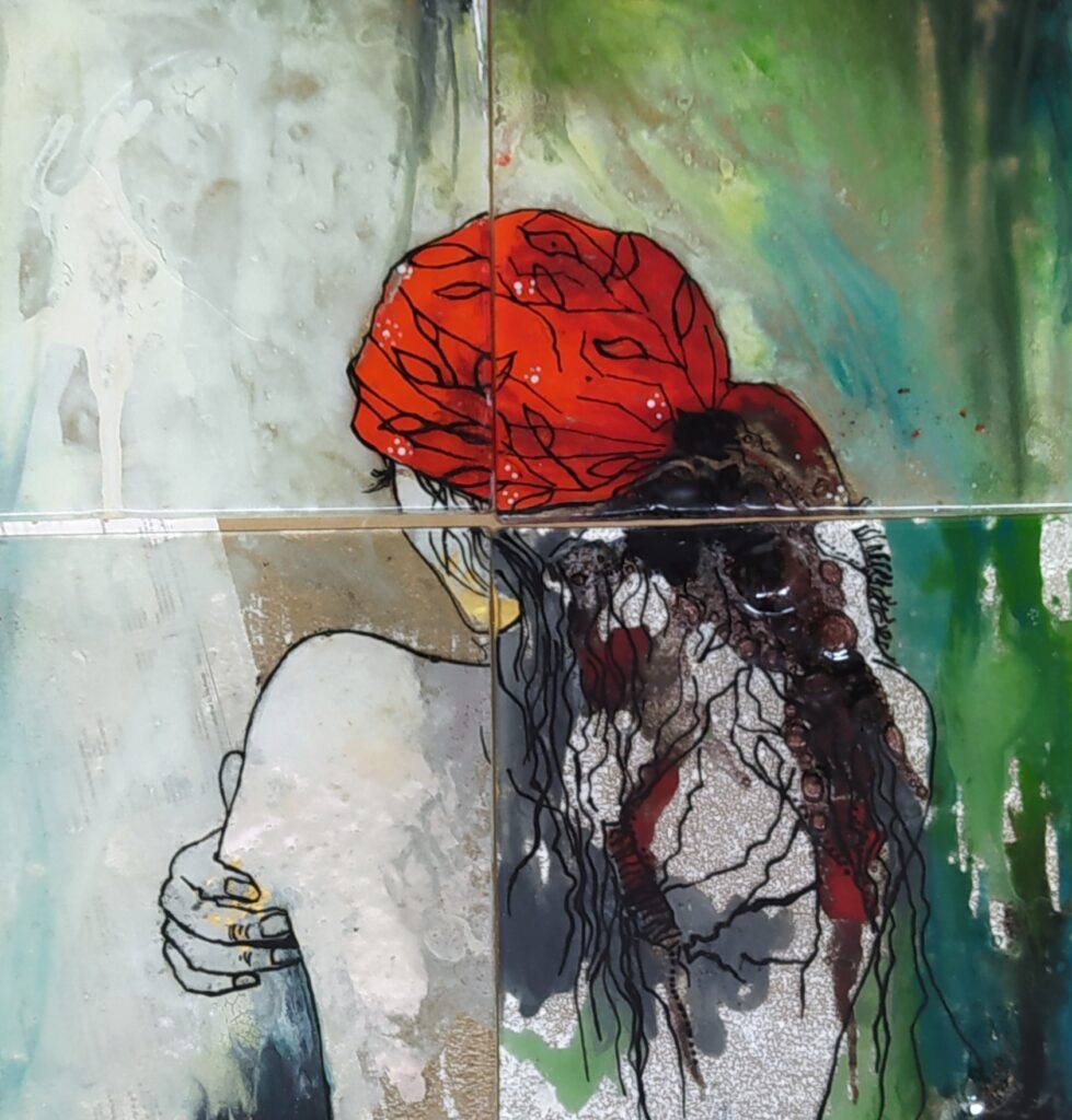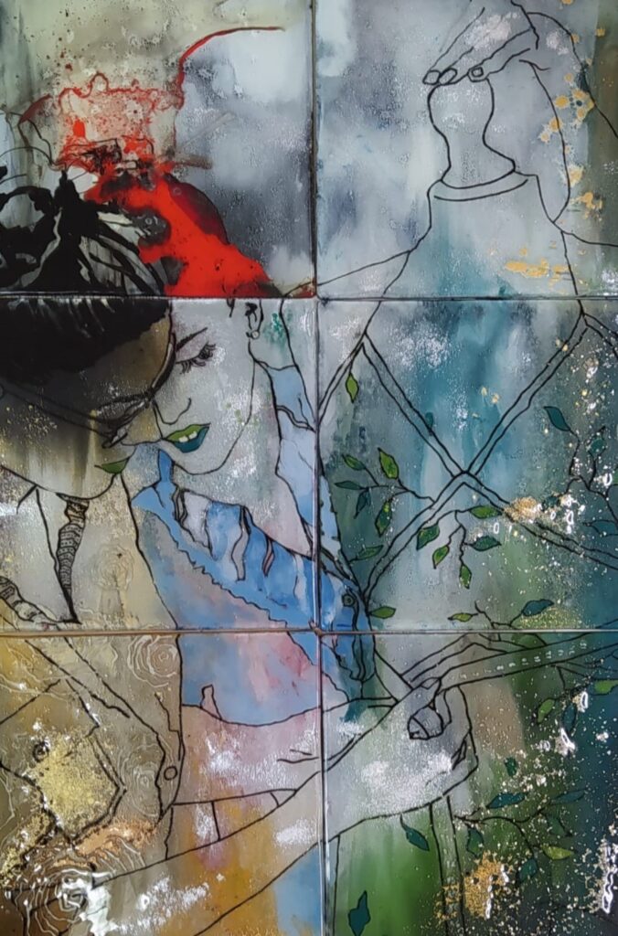 Marissa Castro; artista peruana, la más joven de los cuatro y con una gran trayectoria artística, nos presenta obras en vidrio sobre metal.