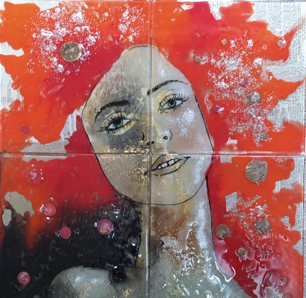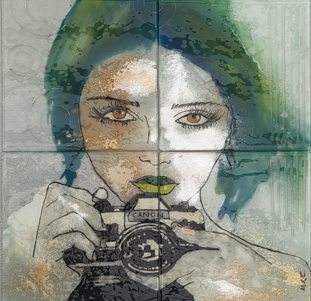 Como si toda la pasión y el calor del amor pudieran ser contenidos en el frío vidrio y protegidos por el duro metal, Castro nos sorprende con cuatro rostros femeninos que nos contemplan y nos hablan de un sin fin de posibilidades. Con la fuerza del horneado a altas temperaturas, la artista logra inmortalizar sus pinturas en vidrio con grisalla y esmaltes. Esta técnica la heredó de su madre para hacerla suya y poder aplicarla en su trabajo. En sus obras advertimos una consonancia entre la fuerza y la pasión de la mujer con el calor del horneado en donde termina de dar el acabado final a cada una de sus piezas.
